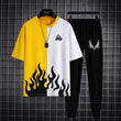 Mens 2pc Micro Plain Premium Fire Printed Tracksuit (TROUSER+SHIRT)
